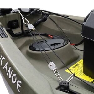 QuickConnect for EPS FOOT Steer provides integrated, plug-n-play functionality for Newport, Torqeedo, or Bixpy motors on the U10. It ables pin-point position control via the foot steer pedal, seat-mounted throttle via the SideTray, and pulley-assisted motor retract from the seat. It features a kick-up release to prevent damage from unexcepted contact. QuickConnect for EPS installs in a few minutes with no drilling or screwing into the kayak. Then, it can be added or removed in under a minute.
