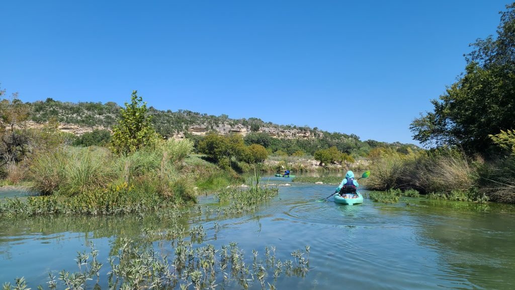 The TGs, Evelyn, Alex, and Duane, enjoyed an wonderful day paddling and fishing on the South Llano River from Second Crossing to the KC150 bridge. Although the water was skinny, 53 CFS, we managed to paddle (and push at times) our way down the whole section of this beautiful Hill Country river Great day!.